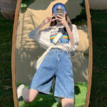 Casual Campus Style Mid-Length Denim Shorts Versatile Summer Five-Pocket Jean Shorts Description