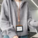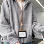 Vintage Grey Double Zipper Hooded Cardigan Relaxed Fit Knitted Sweater Coat Description